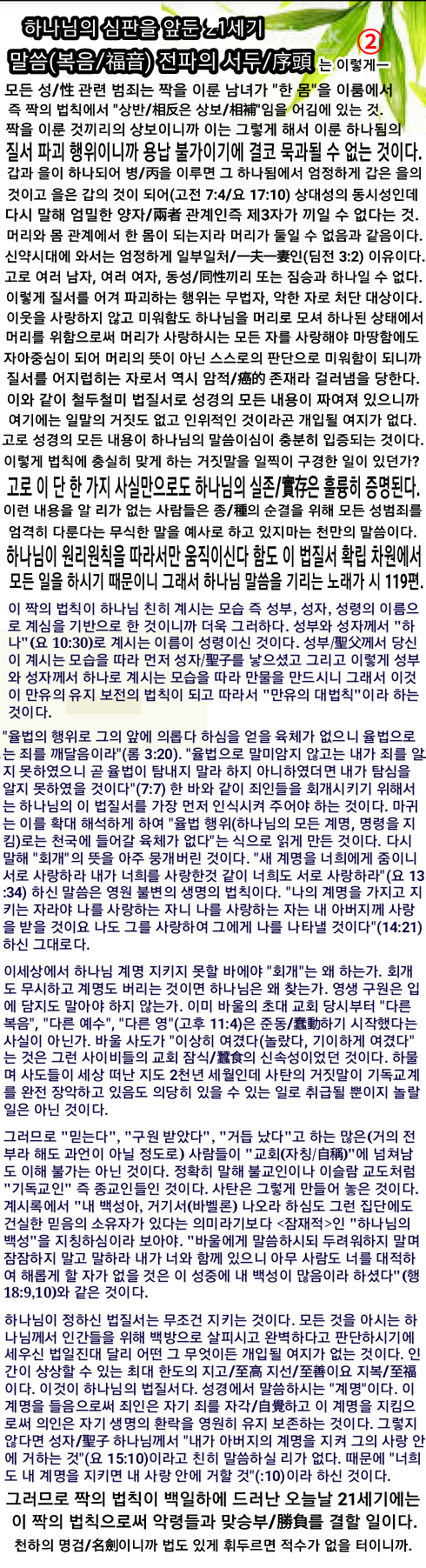 육체적 전쟁과 영적 전쟁은 짝인즉 성질이 정반대라 육체로서의 약함이 영적으로는 강함인 것
