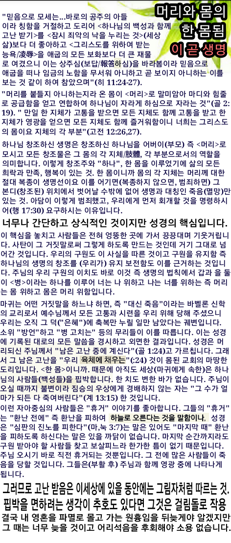 그러나 유의해야 하는 것은 어디까지나 이세상은 사탄의 관장/管掌이라는 것.