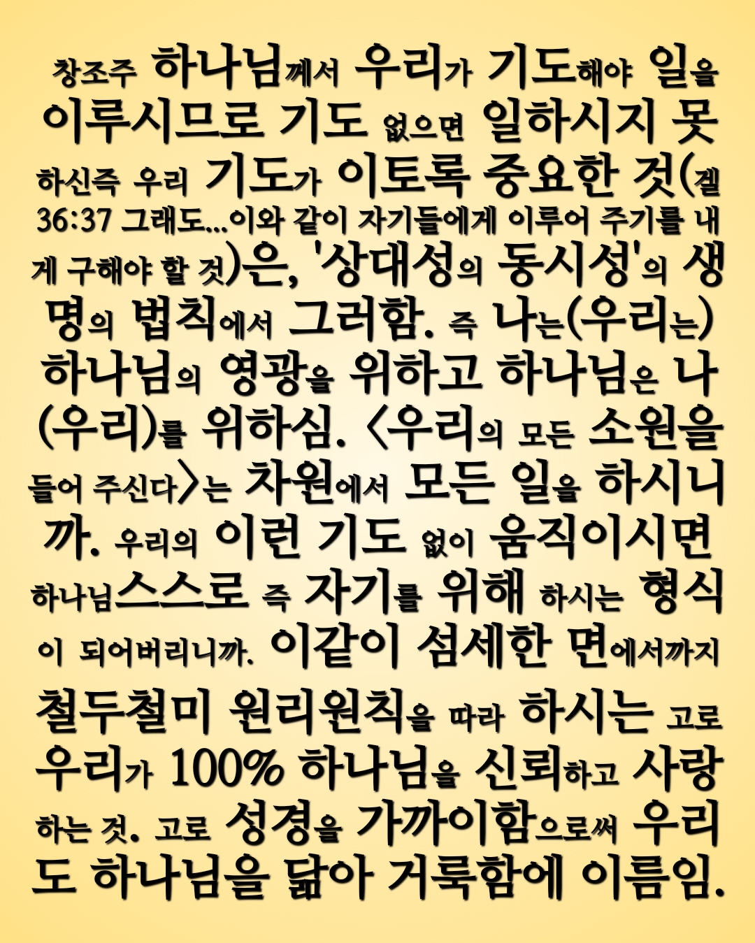 이제 세상은 아담 범죄로 인한 악마의 지배 통치 시대가 종결되고 비로소 정상으로 복원되어 사람 세상 곧 "마지막 아담"(고전 15:45)의 나라가 시작되니 오직 성경에 기록된 말씀만이 영원히 확립되리